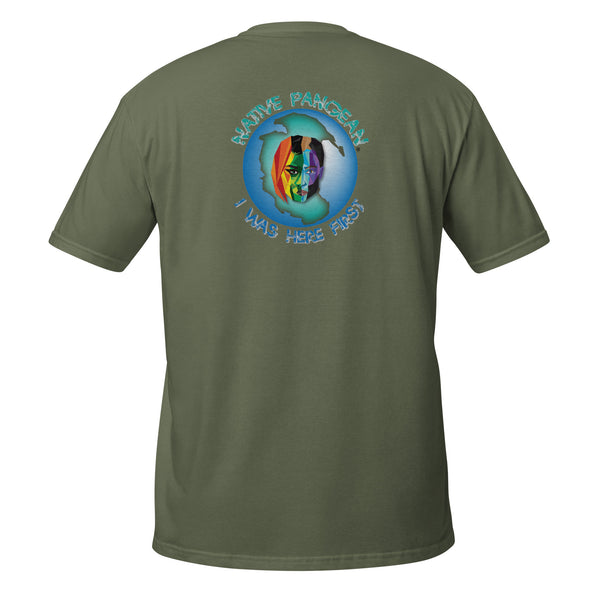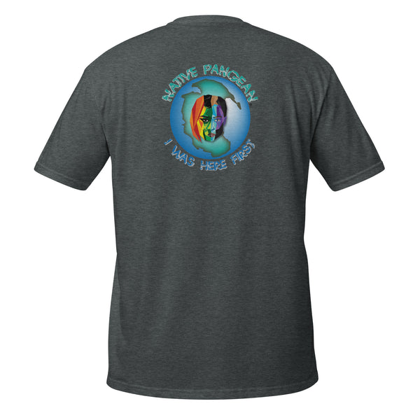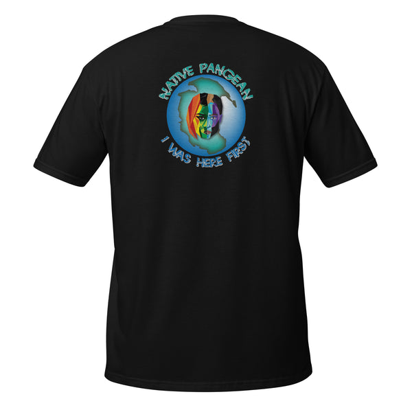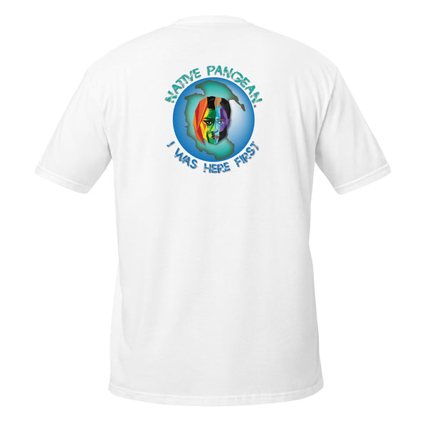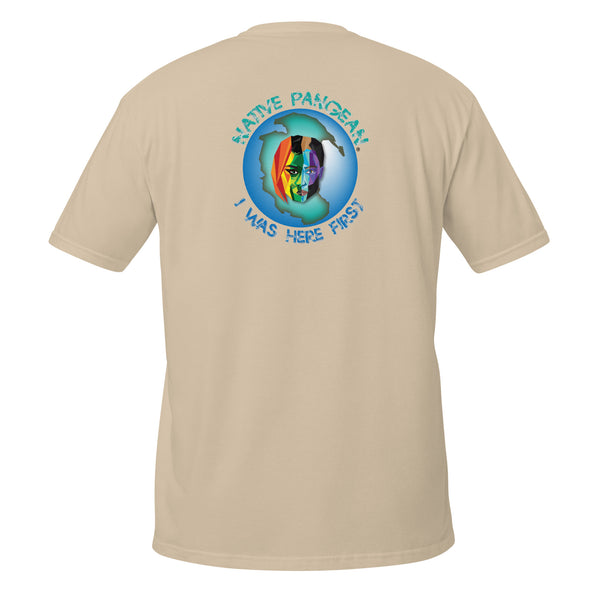 Our original Native Pangean I Was Here First Rainbow Tee. We are all Native Pangean. We were all here first. One Love.